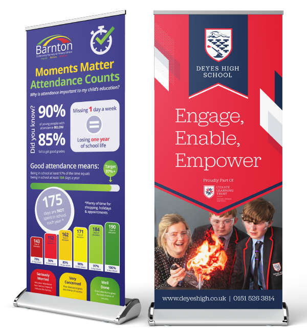As specialists in education marketing, we work with schools, academies and multi-academy trusts to provide inspiring large format print — from wall graphics and display boards to exterior signs and promotional banners.