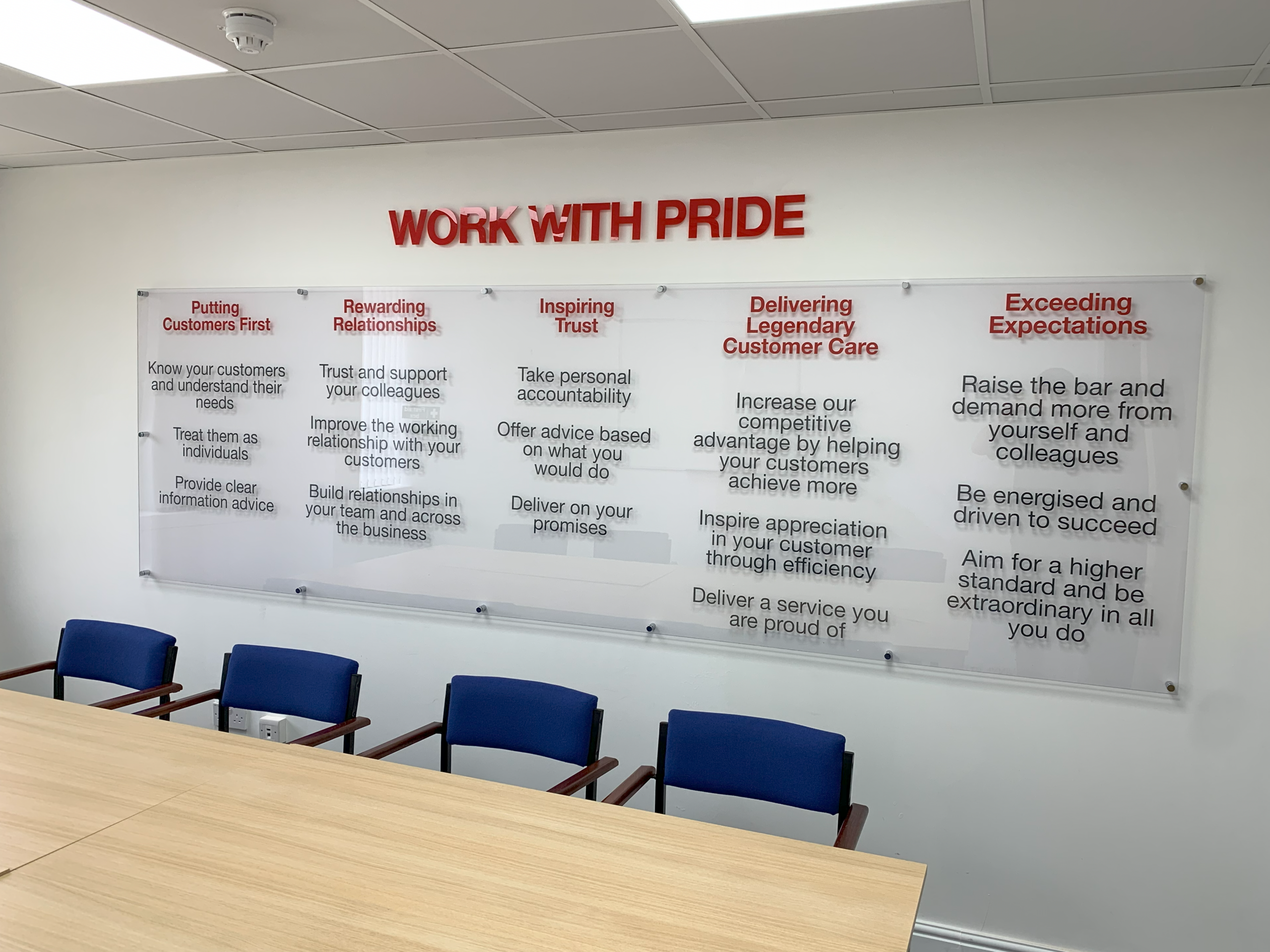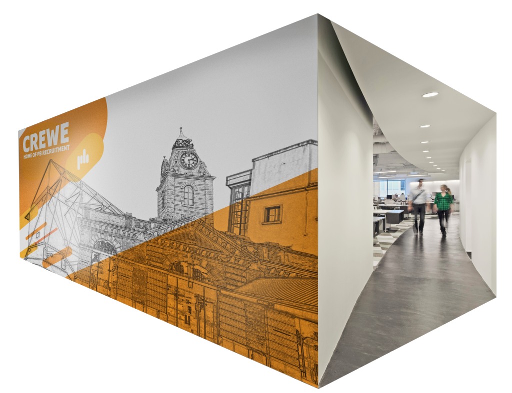 Once the project has been agreed our design and project management team will work closely with you to conceptualise your ideas and present design proofs to showcase our vision for your project, once approved your finished wall graphic designs will move into our state of the art production facility, ensuring colour matching and precision quality throughout the process. To complete the project our installation team will travel to your location(s) and install your bespoke vinyl wall graphics. To create minimal disturbance to your day, we pride ourselves in being extremely flexible and can work around you for installation, even if that means working through the night when your workplace is empty.